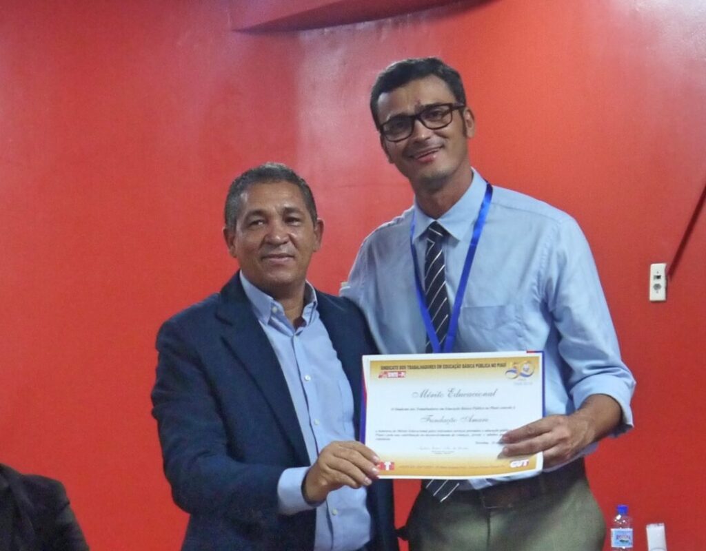 por Johannes Skorzak O Sindicato dos Trabalhadores em Educação Básica Pública no Piauí (SINTE-PI), por ocasião de seu cinquentenário, elegeu AMARE como a Organização da Sociedade Civil (OSC) de maior relevância à educação pública do Piauí. A cerimônia aconteceu no dia 21 de novembro de 2018, na sede do sindicato em Teresina e contou com muitas autoridades presentes. AMARE enviou como seu representante o coordenador pedagógico Raimundo Aguiar, que recebeu das mãos do vice-presidente Kassyus Lages, a medalha e o certificado de honra ao Mérito Educacional. “Esta comenda expressa o reconhecimento a AMARE por seus 29 anos de trabalho sério e por sua dedicação a crianças e jovens em situação de vulnerabilidade em Esperantina e entorno”, destacou o coordenador pedagógico Raimundo Aguiar, ainda emocionado pela honraria.