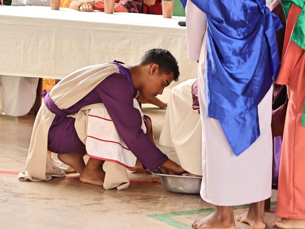 Por Vitória Santos, estudante principiante de jornalismo Foi inexplicavelmente irradiante a fé, com que crianças e adolescente talentosos da instituição encenaram um espetáculo admirável! Inicialmente tímida, a meninada das oficina de teatro, de canto e dança apresentou, com grandiosidade, empatia e paixão a Última Ceia de Jesus com os apóstolos, sua traição e a morte na cruz. O coral AMARE, composto por vozes de crianças e adolescentes, encantou a plateia. Coreografias do grupo de dança expressaram, com todo o seu potencial mímico e dramático, a luta do amor de Cristo contra o pecado. Este embate deixou o espetáculo ainda mais emocionante. A celebração ocorreu na manhã de quarta-feira, 5 de abril, acompanhada por um clima absolutamente incomum, pois uma grande frente fria se baixara sobre a cidade. O evento reuniu meninos e meninas da AMARE com suas famílias e foi abrilhantado com a presença de empresários amigos, voluntários e simpatizantes. A memória da paixão de Cristo e a sua ressurreição, ministrada pelo educador e poeta esperantinense Artur de Paiva, levou os participantes à partilha da fé, com reconhecimento da grandeza de Cristo. Ao fim da celebração, o coral da AMARE entonou a canção gospel É uma incrível graça (This is an Amazing Grace, de Phil Wickham). Com ela, o coral tocou bem no fundo do coração. Mas, o momento mais esperado pelas crianças era a partilha dos ovos de chocolate. Foram distribuídos 514 (!) ovos de Páscoa, que haviam sido confeccionados na instituição, com a matéria prima generosamente doada pelo empresário José Carvalho Júnior, e pela Cacau Show. A guloseima fez a felicidade das crianças que se lambuzaram e espalharam largos sorrisos de gratidão. E assim terminou a festa da Vitória da Vida, na qual crianças e pais foram revigorados na sua fé. Fotos e Vídeo: Alexandre Marques