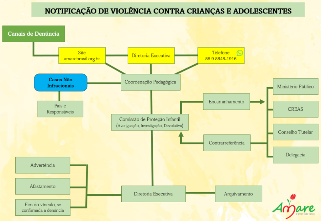 AMARE preza pela segurança e pelo reconhecimento de direitos de seus assistidos. Desde 2021, disponibiliza em seus serviços a crianças e adolescentes sua Política de Proteção Infantil (PPI) que visa colocá-los a salvo contra perigos. Por meio desta PPI, acordada entre pais, responsáveis, assistidos em sucessivos debates e oitivas internos, os colaboradores e voluntários, que trabalham na instituição, são orientados sobre condutas consideradas potencialmente lesivos a crianças e adolescentes confiados a eles. A PPI, na sua versão original de 2021, no entanto, ensejava ainda dúvidas, angústias e questionamentos sobre a sua aplicação concreta.