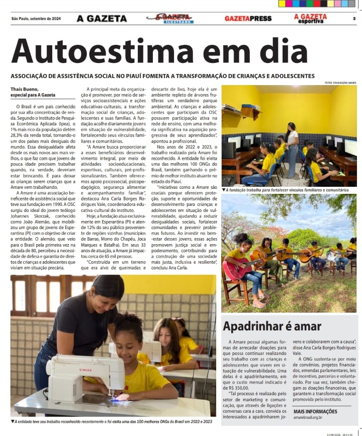 “Iniciativas como Amare são cruciais porque oferecem proteção, suporte e oportunidades de desenvolvimento para crianças e adolescentes em situação de vulnerabilidade, ajudando a reduzir desigualdades sociais, fortalecer comunidades e prevenir problemas futuros. Ao investir no bem-estar desses jovens, essas ações promovem justiça social e empoderamento, contribuindo para a construção de uma sociedade mais justa, inclusiva e resiliente”, concluiu Ana Carla.