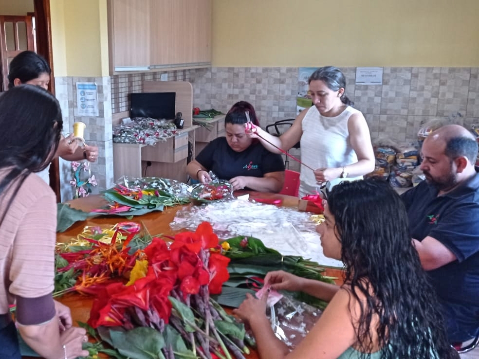 A equipe da instituição se envolveu para colher as flores e formar os buquês.