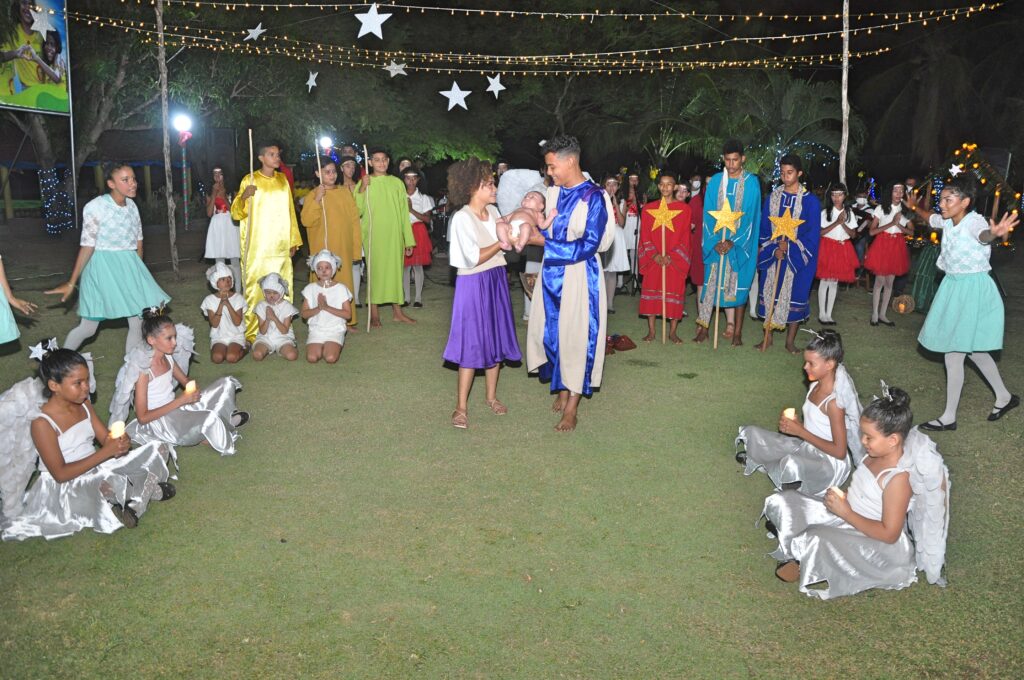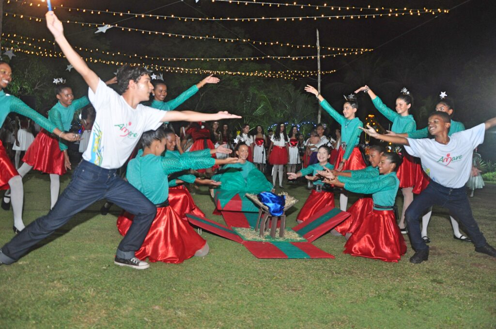 O pátio central da Amare foi palco desta grande festa que culminou num belíssimo espetáculo musical em homenagem ao aniversariante. A Cantata de Natal, o concerto de flautas e a banda Amare deram um brilho muito intenso. Mas, o centro da noite foi, sem dúvida, a encenação do nascimento do menino Jesus pelo grupo de teatro e dança.