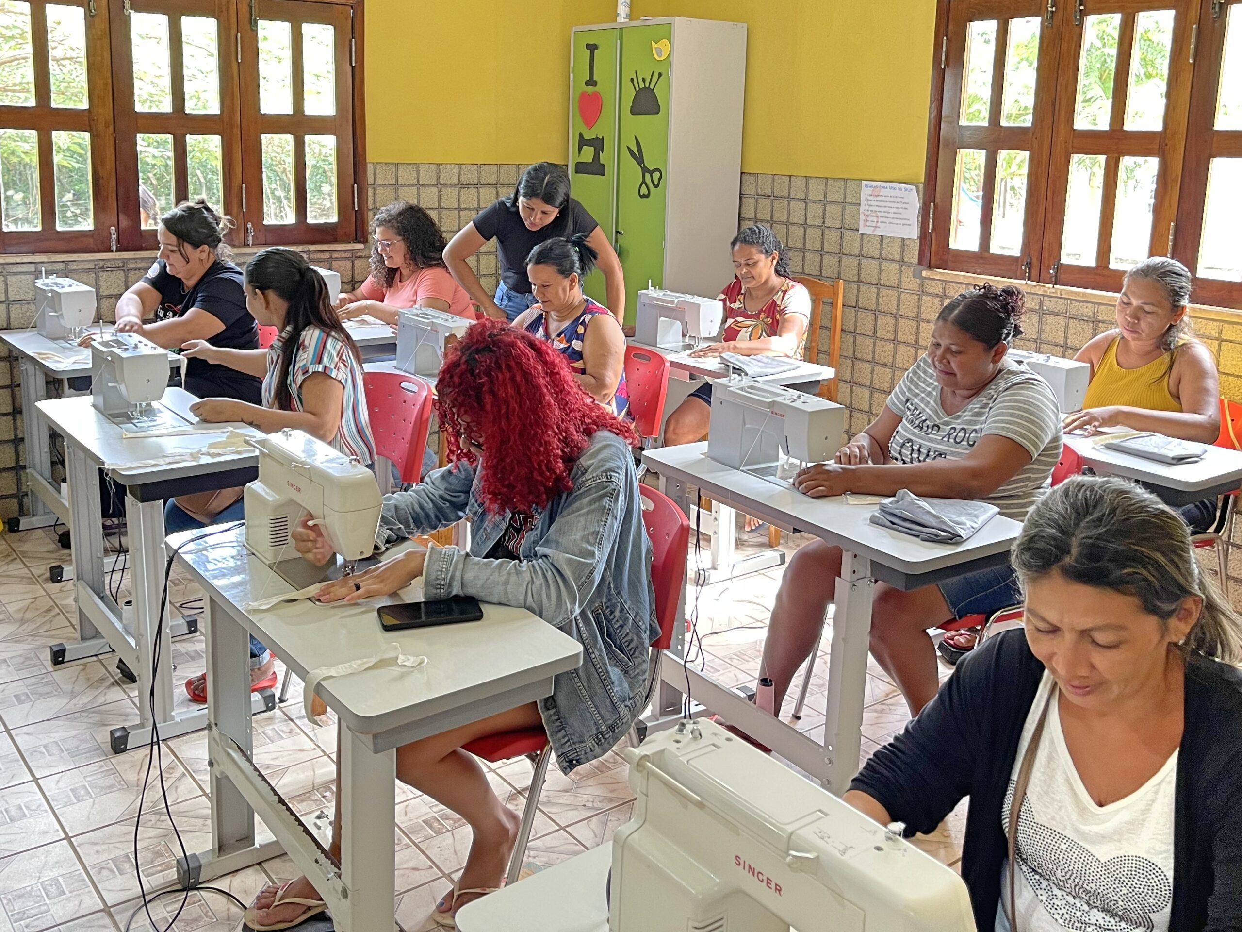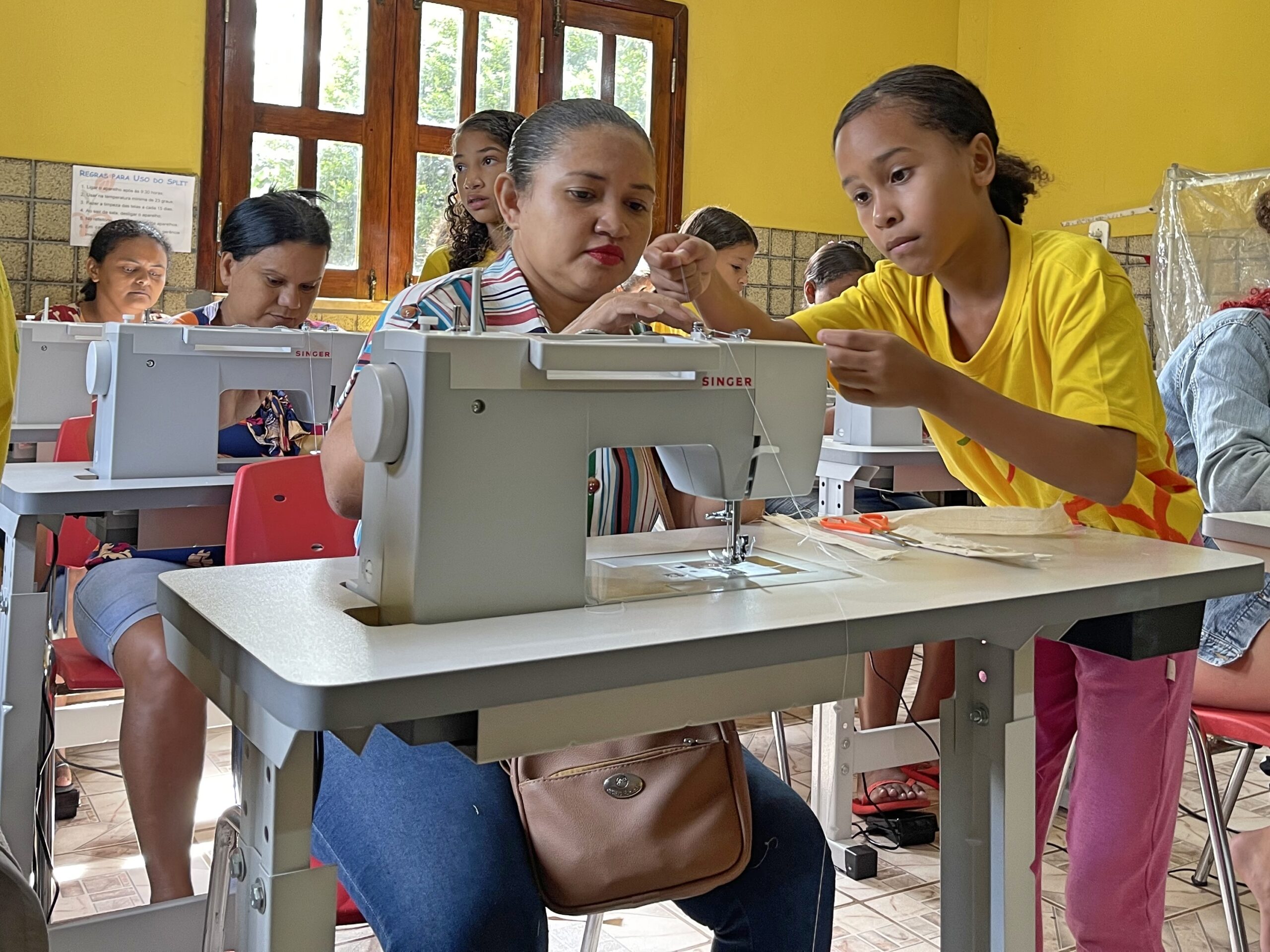 Outra oficina, ministrada pela educadora Claudiane Pereira Vasconcelos, na segunda quinzena de março de 2023, teve 23 mães e responsáveis como aprendizes de Corte e Costura. Foi com grande êxito que as duas gerações conviveram juntos, “tricotearam” e aprenderam uma da outra. E não foram poucos os adolescentes que no final do curso estufaram o peito cheio de orgulho por que repassaram aos próprios pais o que aprenderam.