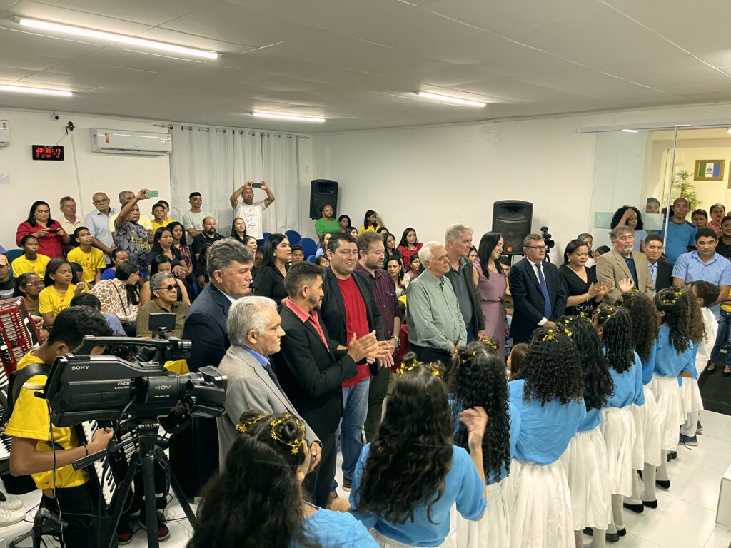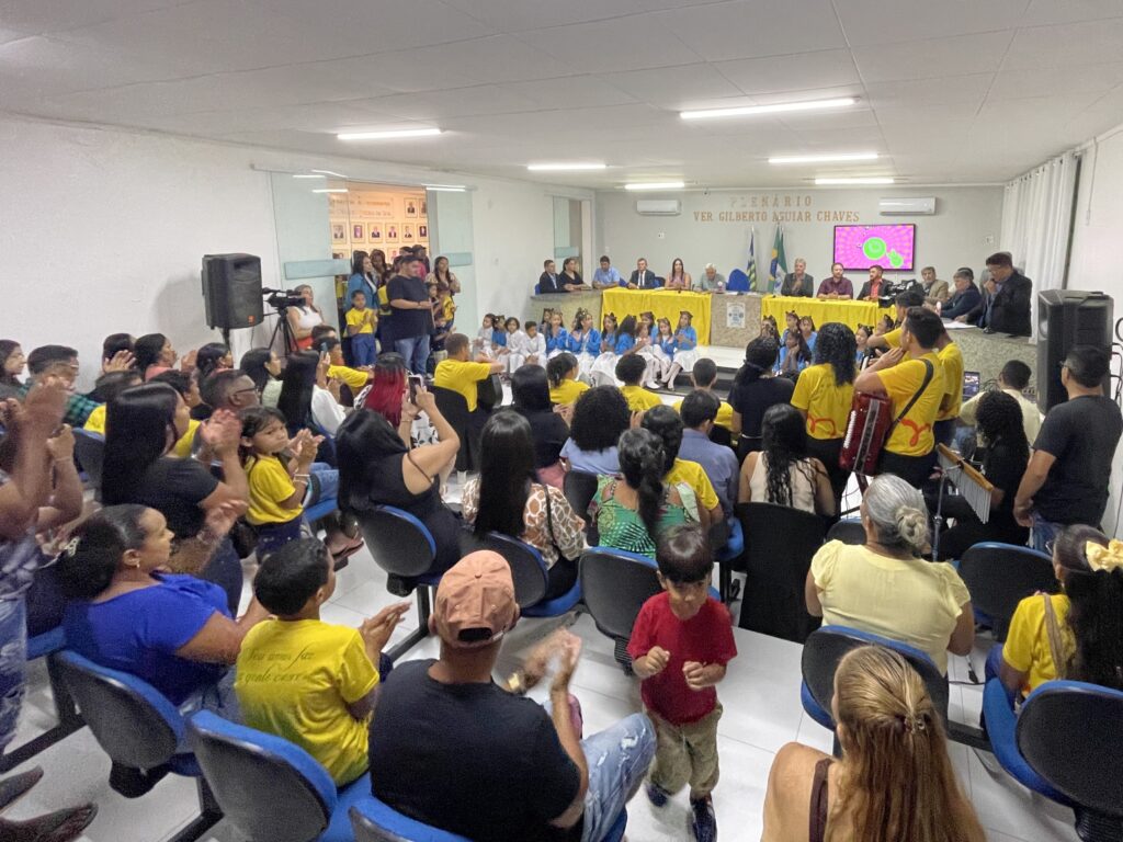Cheios de encanto e alegria, a turma de percussão fez uma belíssima apresentação na abertura da solenidade em frente ao prédio do Legislativo Municipal. Via-se a admiração do público que não sabia se contemplava o espetáculo ou se gravava todos aqueles talentos. Em seguida, o coral AMARE fez olhos brilharem e corações aquecerem com as canções épicas como “A vida é tão boa”, de Daniel Ludtke e “Amigos para sempre”.